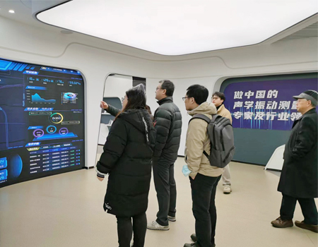 随后一行人参观了公司声学与振动实验室,在公司和浙江省计量科学研究院共建的全国首个噪声测量仪器远程智控方舱计量实验室,领导们对应用数字技术通过远程智能控制、环境安全监控、数据智能处理等模式开展噪声仪器远程在线自动检测表达了浓厚兴趣。